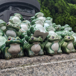 書いたら下のように御地蔵さんの周りに置いてお願いをするのですが、いっぱいのカエルの姿に圧巻されてしまいました。